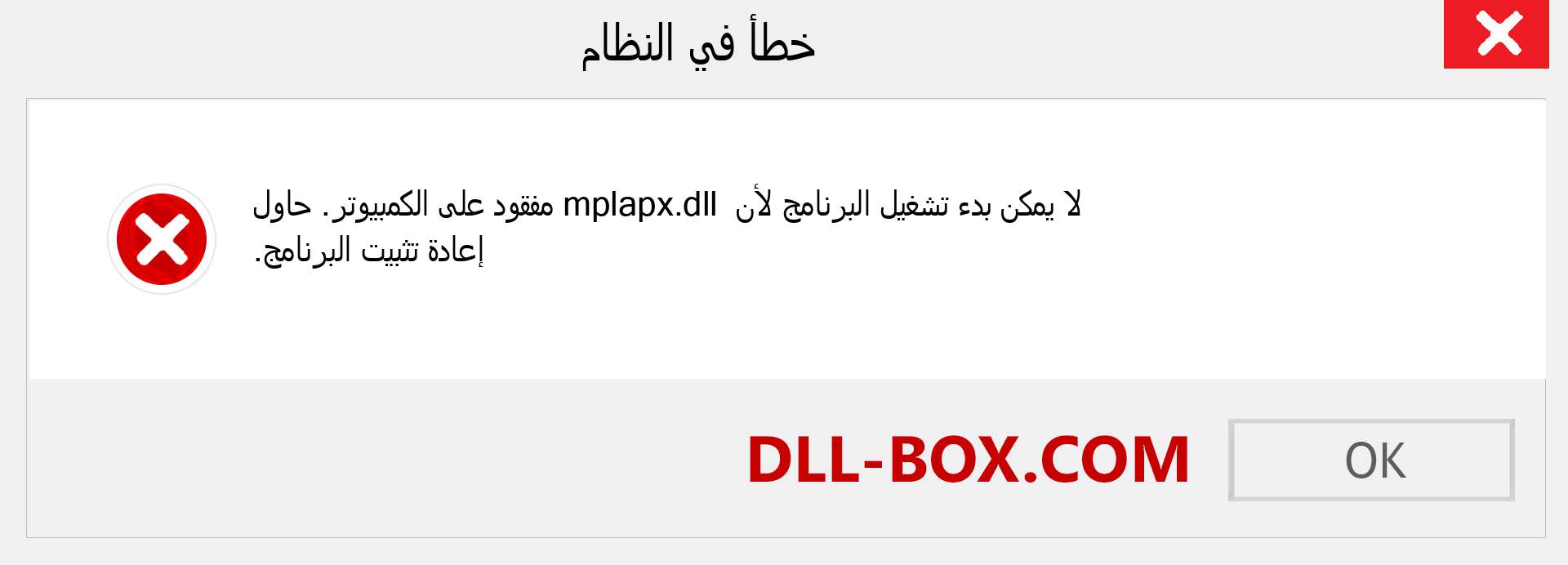 1. لا يمكن بدء تشغيل البرنامج لأن mplapx.dll مفقود من جهاز الكمبيوتر الخاص بك. الرجاء إعادة تحميل البرنامج \ التطبيق لعلاج هذه المشكلة.
