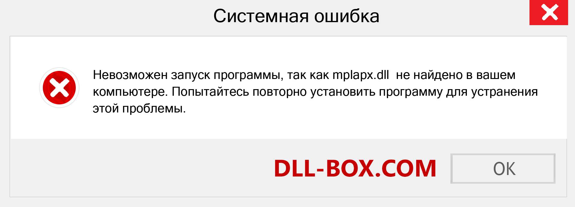 1. Программа не может запуститься, потому что на вашем компьютере отсутствует mplapx.dll. Попробуйте переустановить программу, чтобы решить эту проблему.